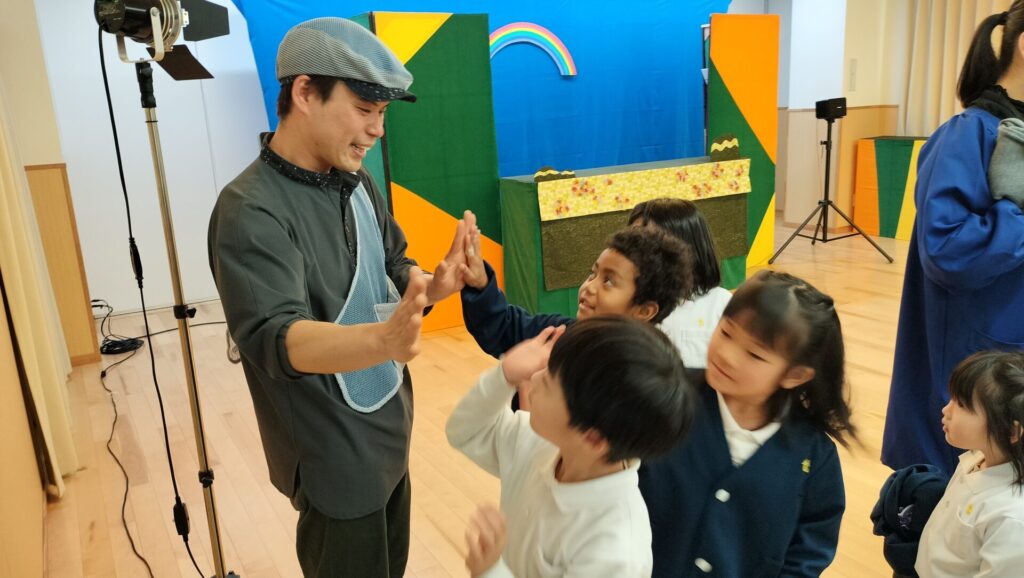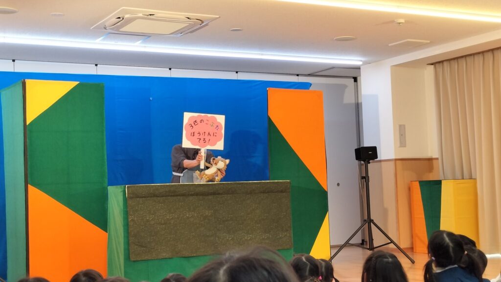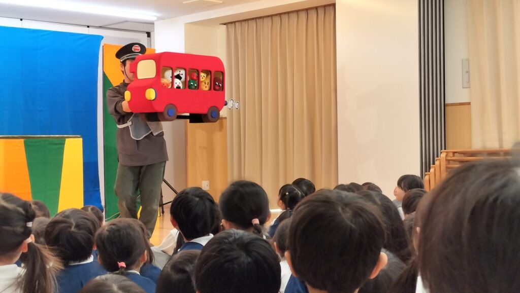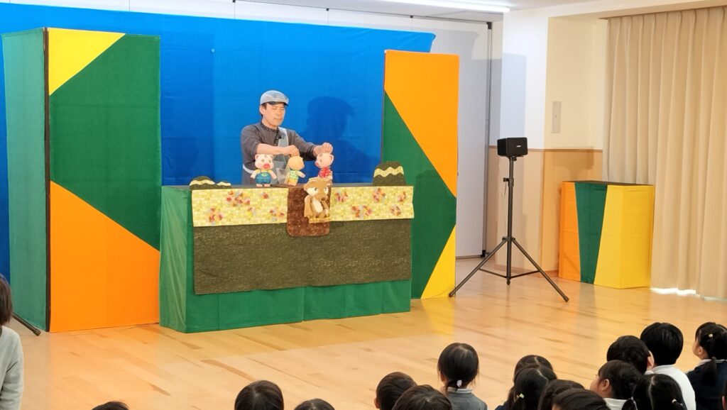 今年の新年会は、「人形劇団ぱん」さんをお招きして「おべんとうバス」と「3匹のこぶたぼうけんにでる!」を観劇しました。