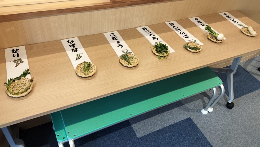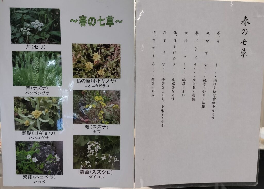 今日1月7日は、無病息災を願って「七草がゆ」を食べる日ですね。幼稚園では年少さんから「春の七草」を覚えています。玄関に飾った「せり・なずな・ごぎょう・はこべら・ほとけのざ・すずな・すずしろ」を見て「どれがせりかな~?」と興味深々。