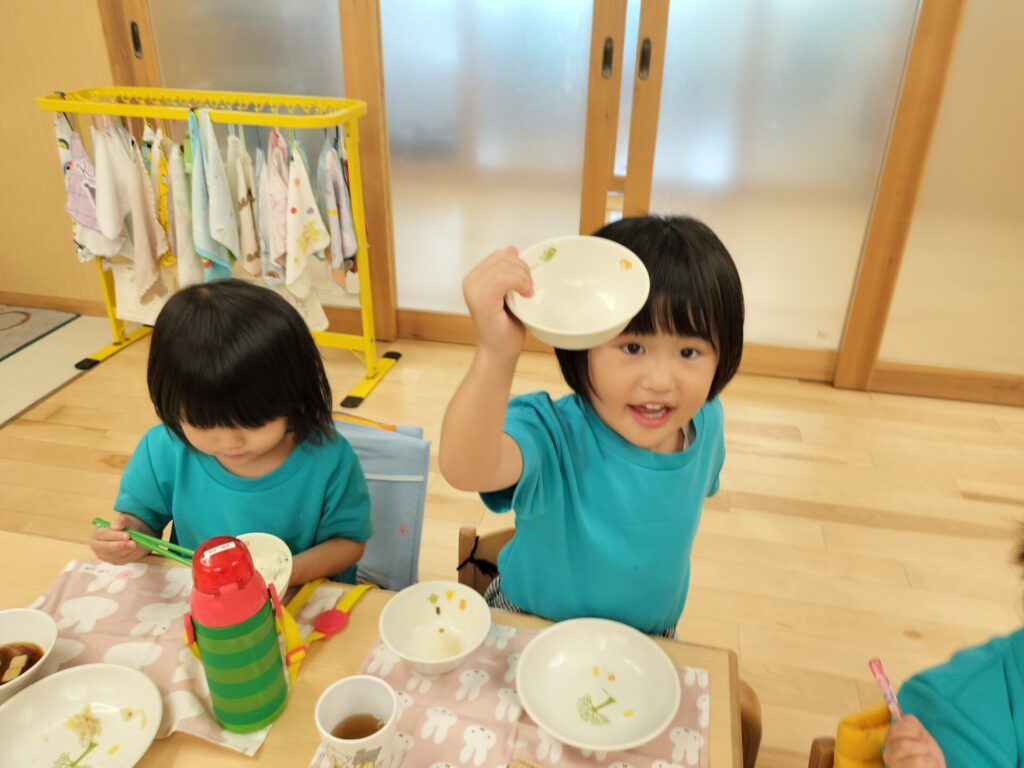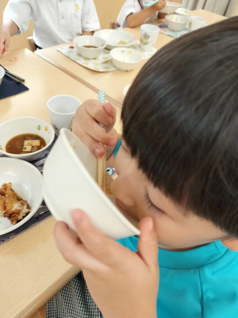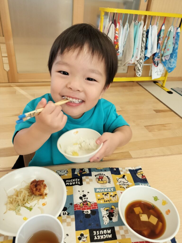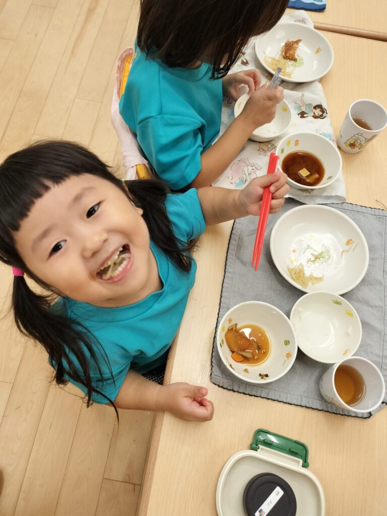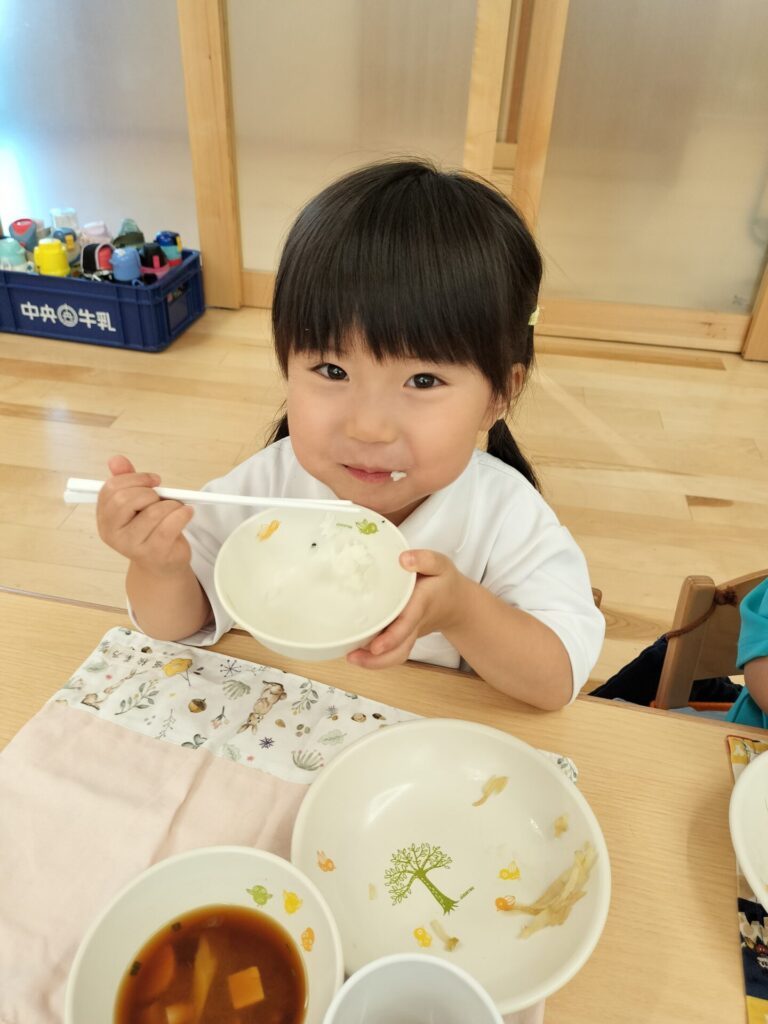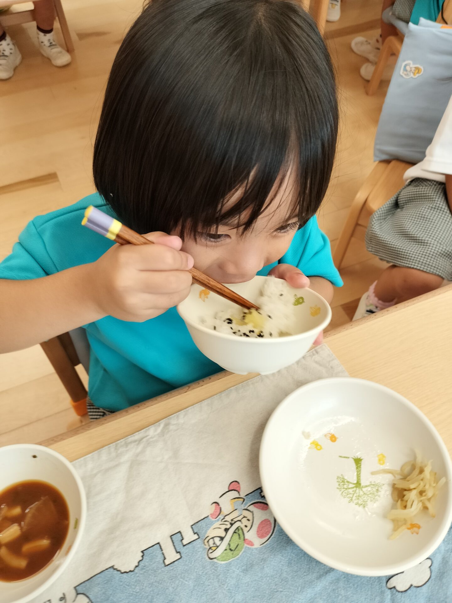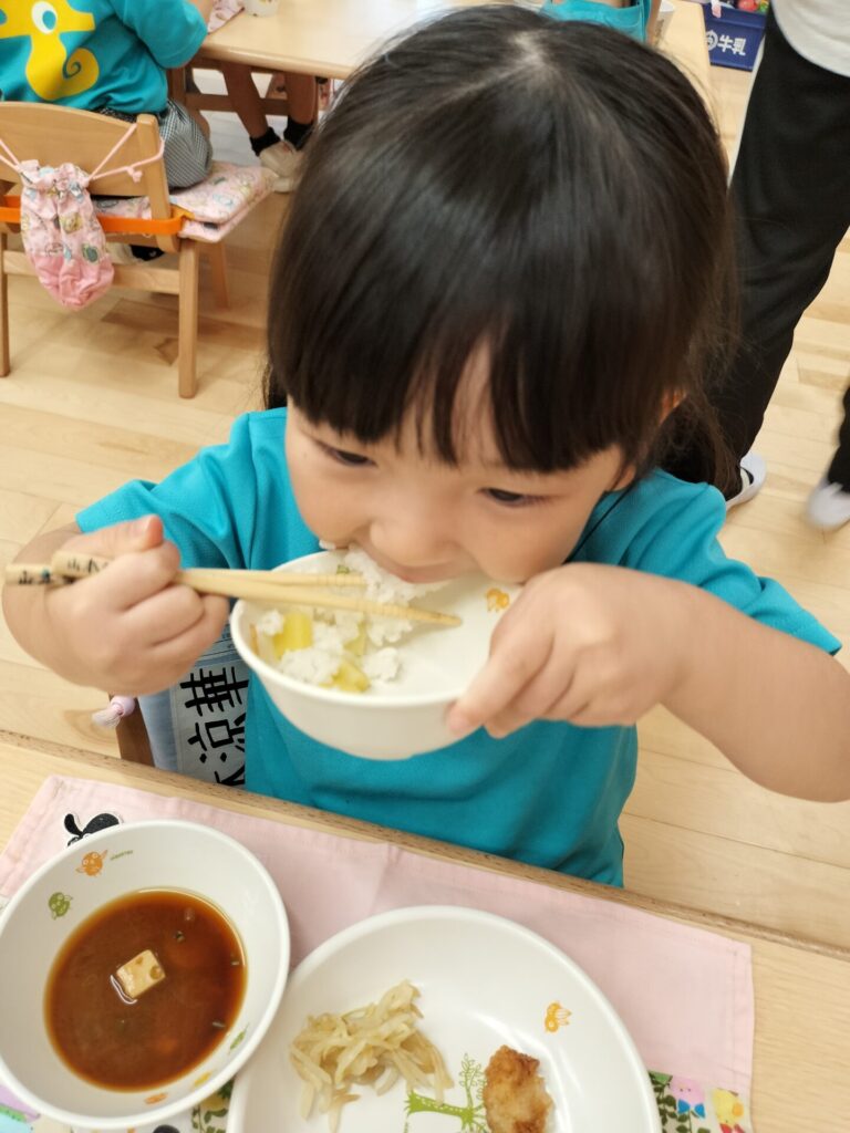 みんなで掘りに行ったお芋を、お芋ご飯にしてもらいました。