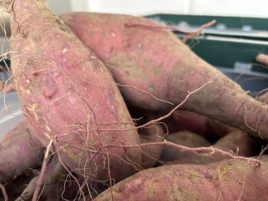 袋いっぱいに詰まったお芋袋を覗いて、こんなにたくさん採ったんだと満足そうににっこり😊何の料理にしもらおうか「お味噌汁」「焼き芋」「スイートポテト」とお友だちと相談し合っている会話もありました。どんな料理になるのかな⁉